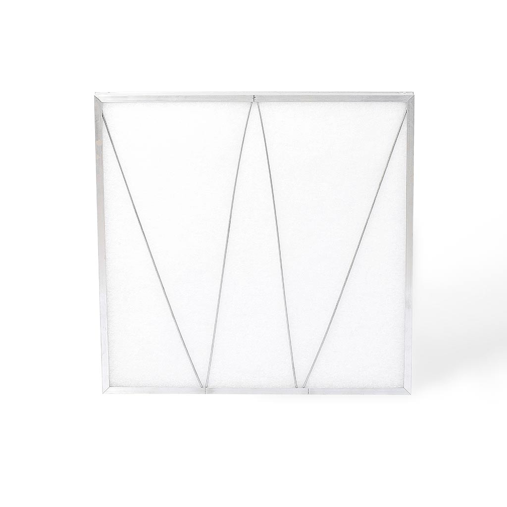 Filter made out of imported non woven media of 150g supported by 1 layer of coarse woven mesh on air entry side and 1 layer of heavy duty aluminium expanded mesh on air exit side, finally housed in a galvanized / Aluminum frame, flange or box type. All four sides are potted with a special PU resin with sponge effect. 100% media is machine pleated to face the max air flow turbulence during operations.